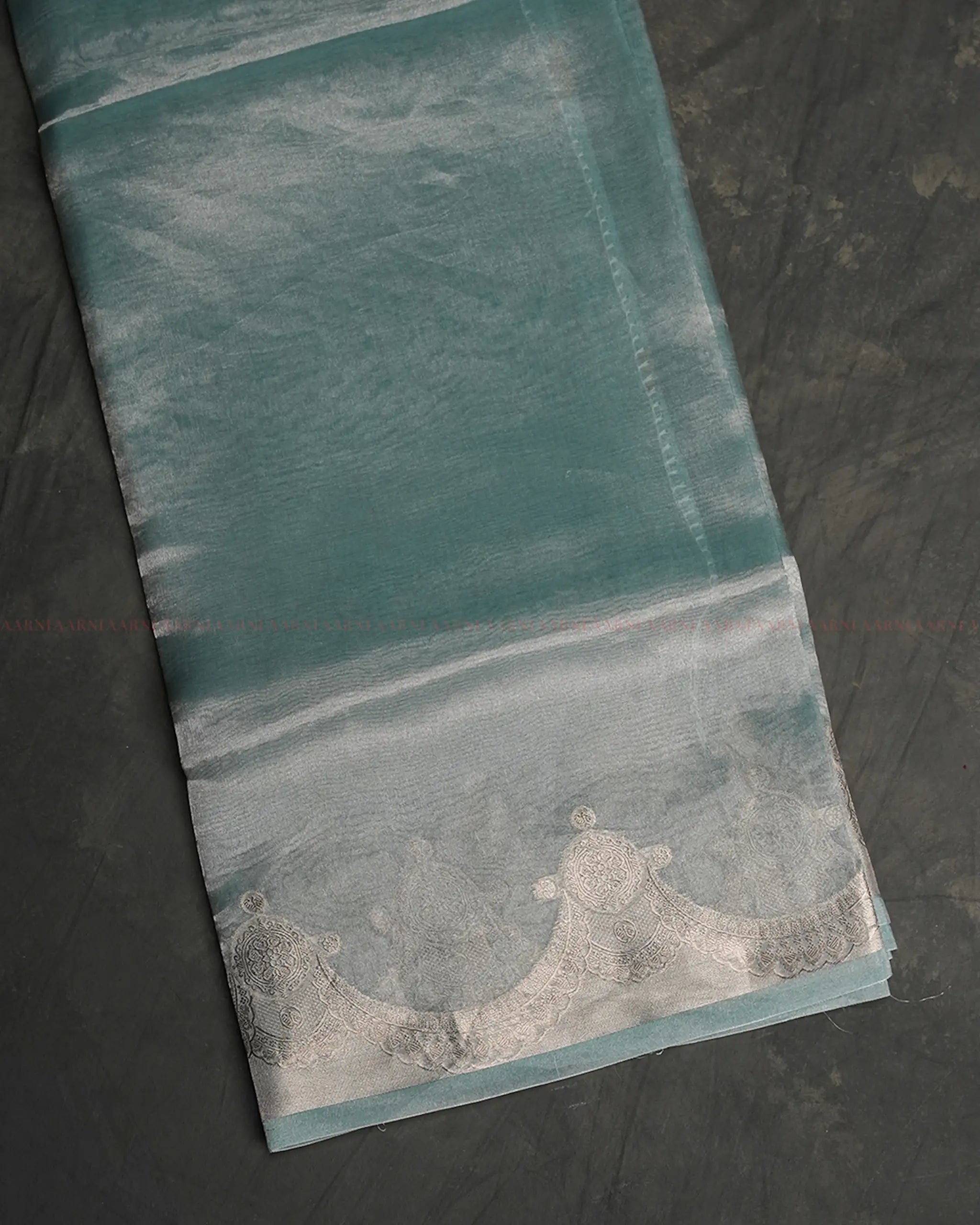 Blue Tissue Organza Silk Saree with Silver Border and Meenakari Blouse