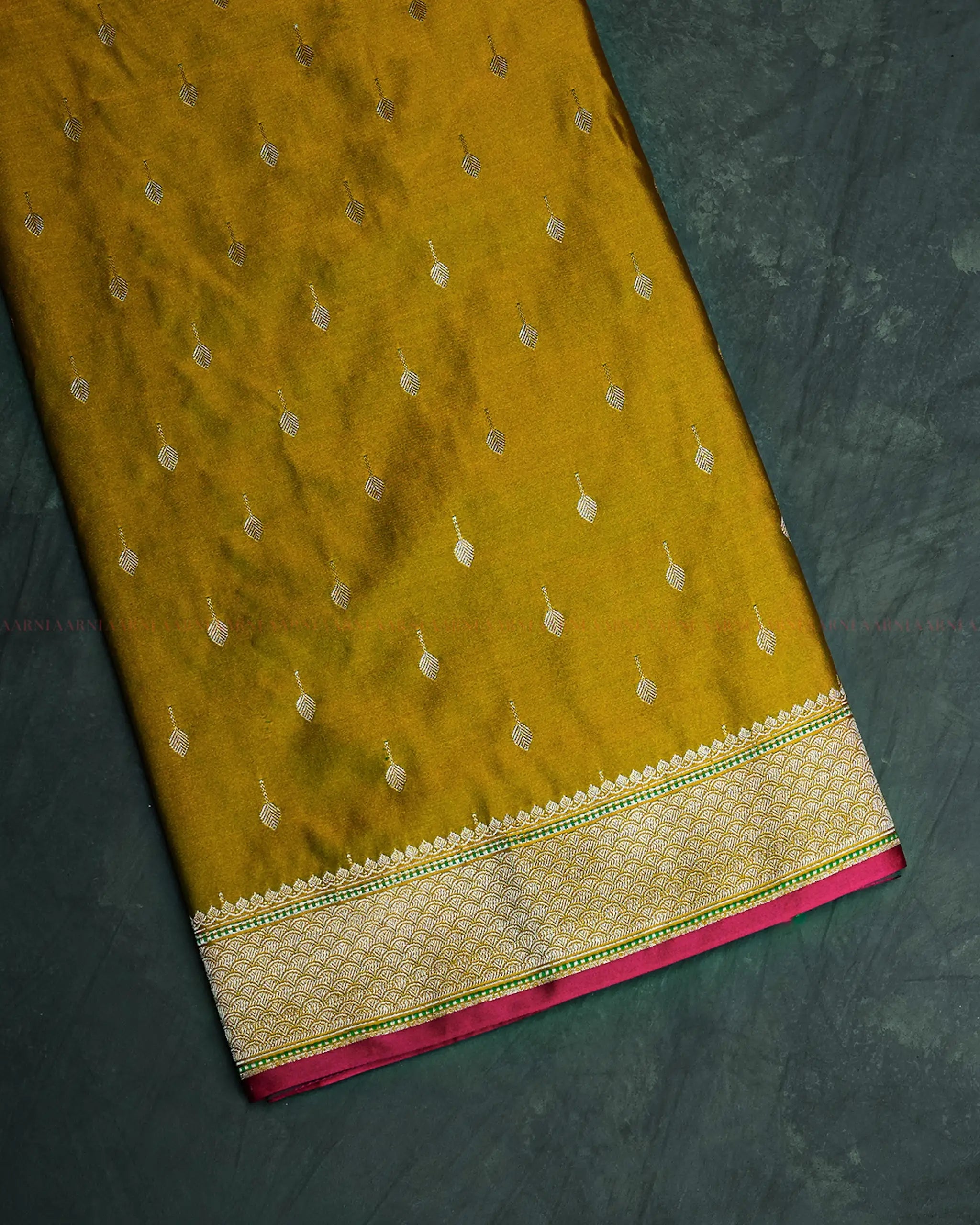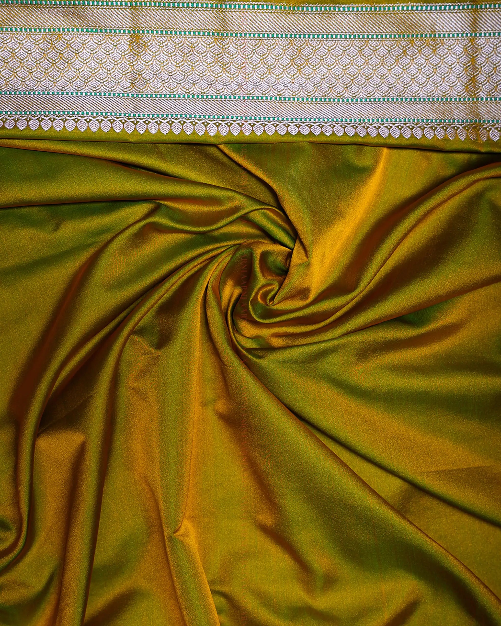Green Mashru Silk Saree with Silver Zari Border and Mango Motifs