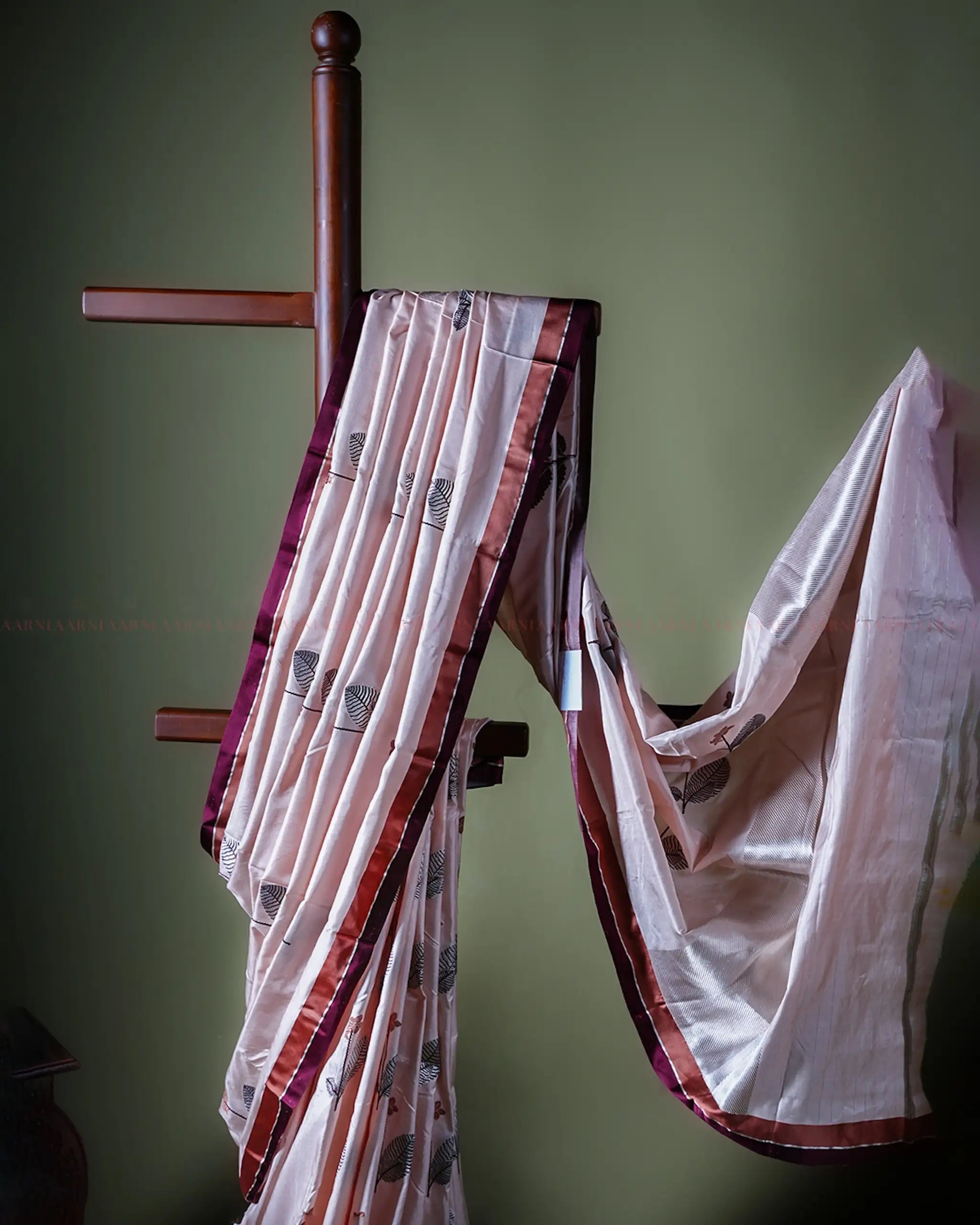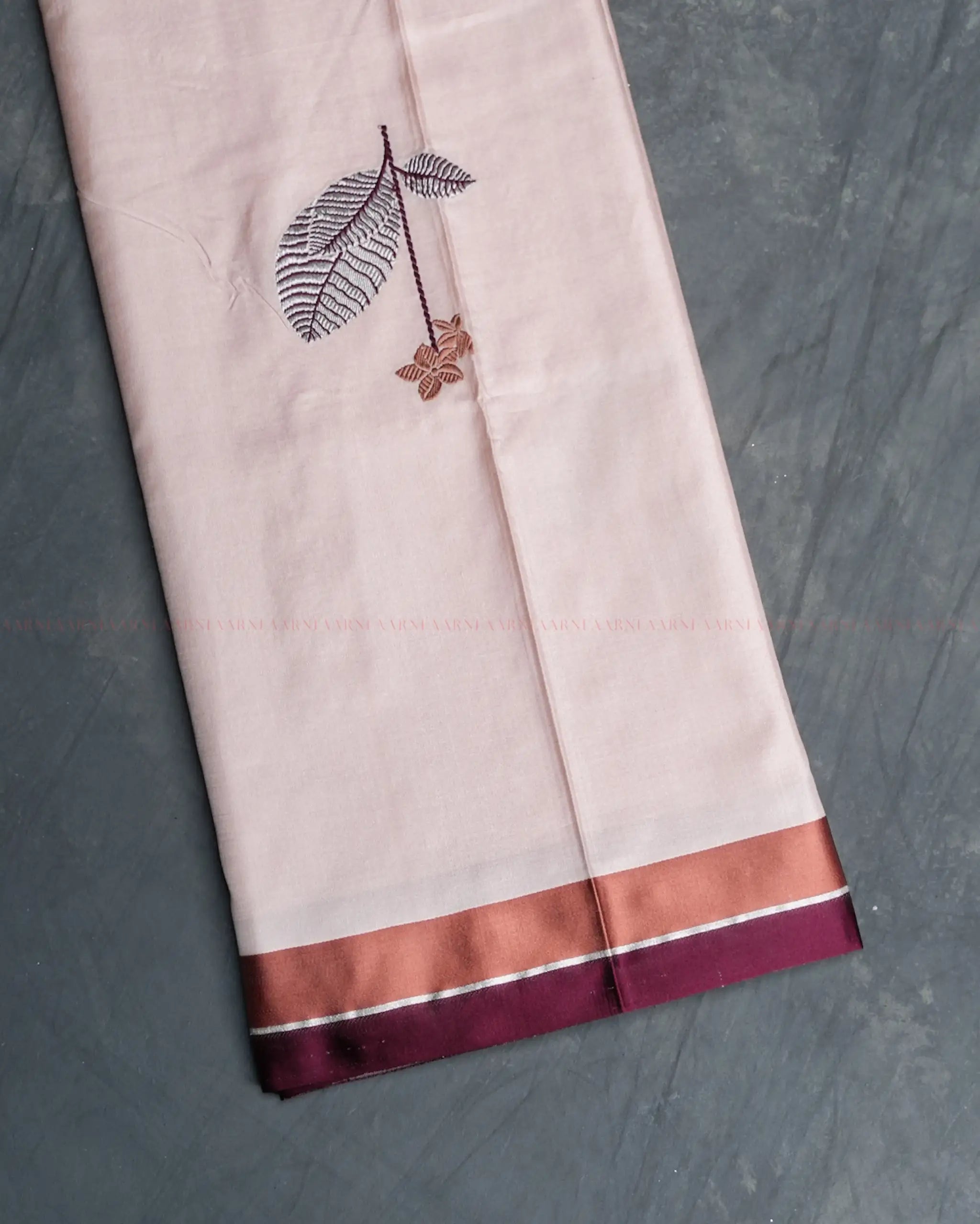 - Dual-tone satin silk border in bronze and dark brown.