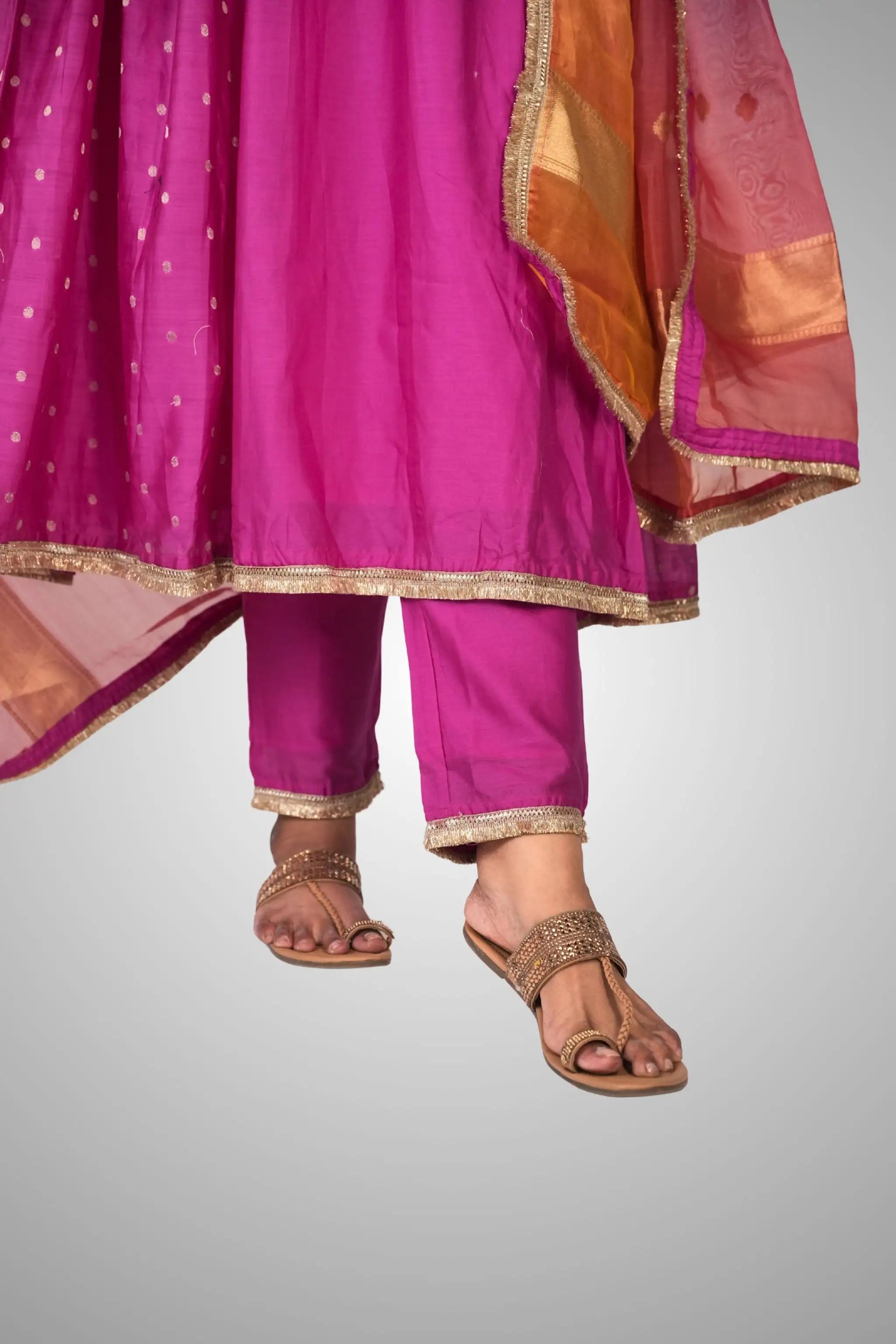 Pink Zari Embroidered Chanderi Silk Anarkali Suit Set