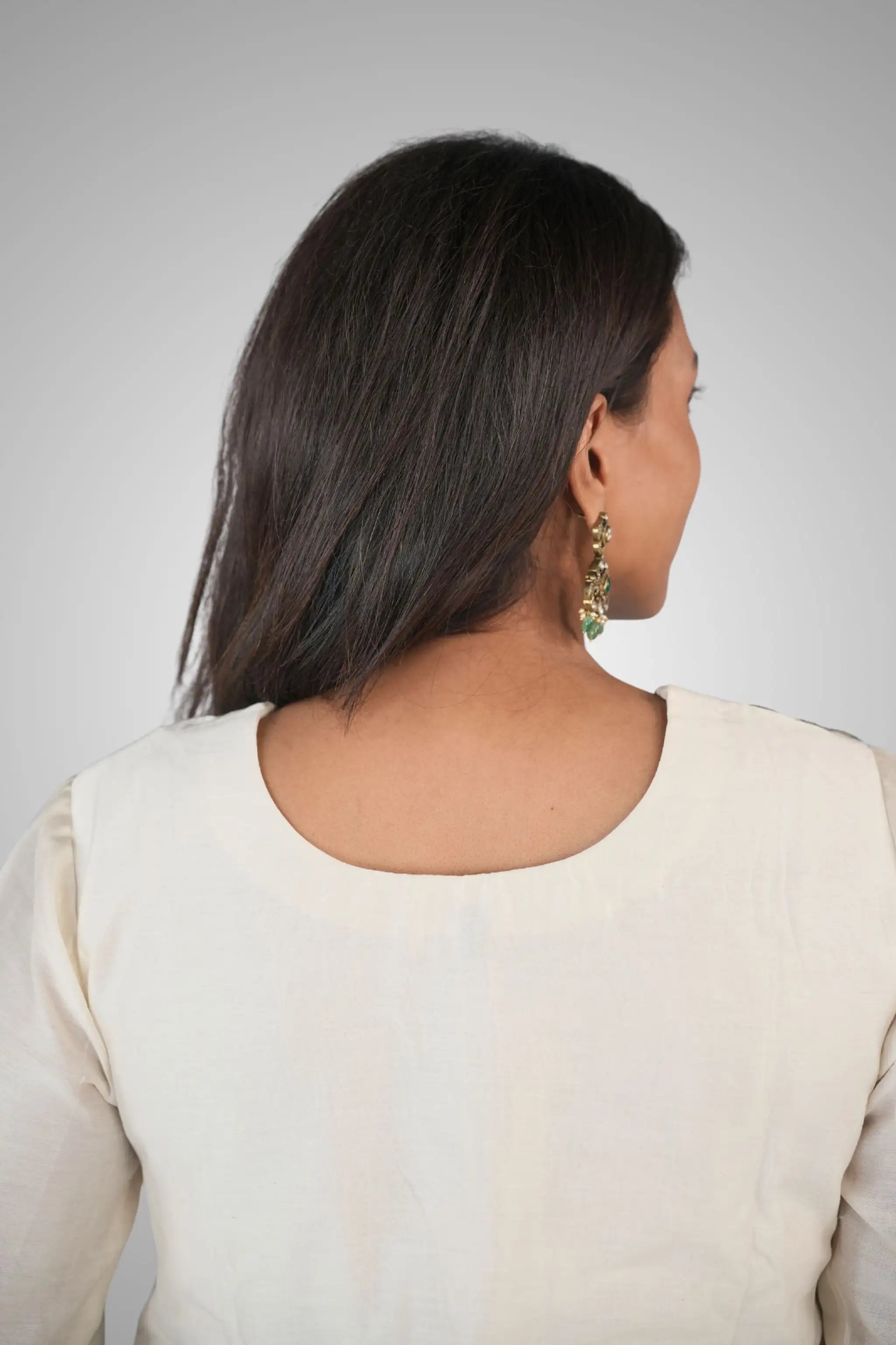 Colors dyed using natural processes might bleed during the initial washes or when they come into contact with skin and light-colored garments. The handcrafted processes of block printing, embroidery, and stitching can lead to slight variations. These unique differences are inherent to handmade products and give each piece its distinct character.